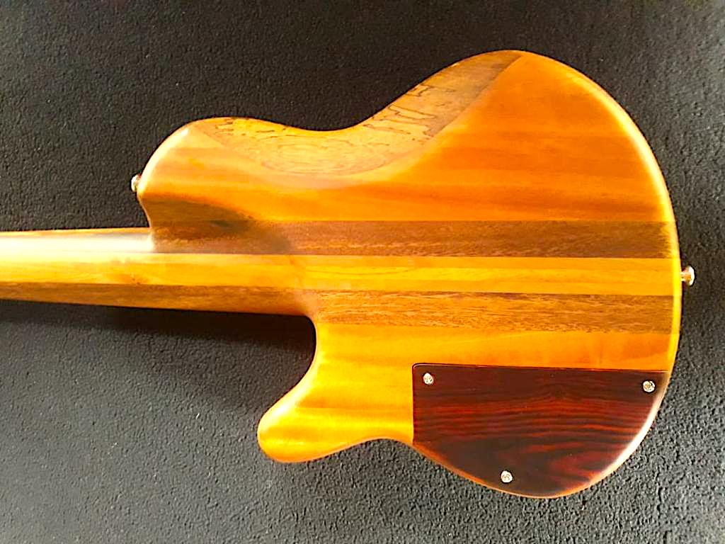 Bajo mini eléctrico de 4 cuerdas, confeccionado con varios tipos de maderas, sistema de pastillas activo; diseñado totalmente personalizado; su caja de resonancia elaborada especialmente para obtener el sonido profundo y sonoro de las cuerdas graves, elaborado con cuerdas de metal, sonido robusto y profundo para los amantes de los graves.